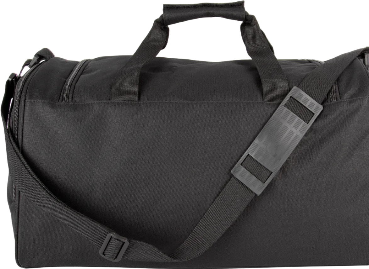 100% polyester. Panneau latéral avec fermeture zippée contrastée et compartiment intérieur porte-chaussures. Grand compartiment principal avec ouverture complète par le haut et fermeture à double zip. Poignées avec renfort rembourré pour un meilleur confort de port. Bandoulière amovible et réglable avec renfort d'épaule, facilement rangeable dans la poche latérale. Personnalisation facile sur les panneaux frontaux, latéraux et sur le rabat supérieur. Disponible en tailles M et L, pour équipes juniors et seniors.