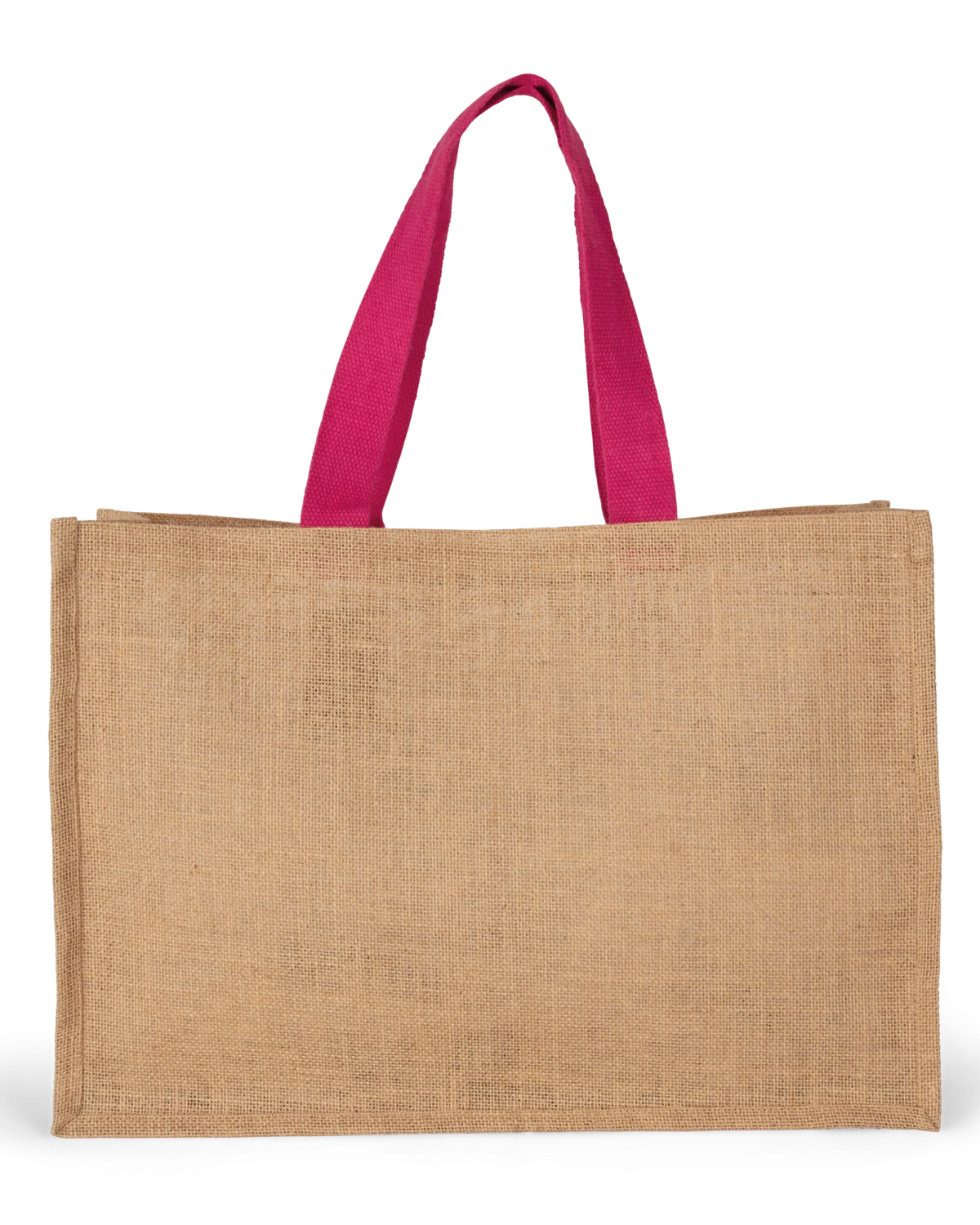 100% jute. Sac taille XL avec anses de couleur contrastée. L'étirage à l'amidon végétal permet de rigidifier la jute et donc le sac, qui garde ainsi sa forme.