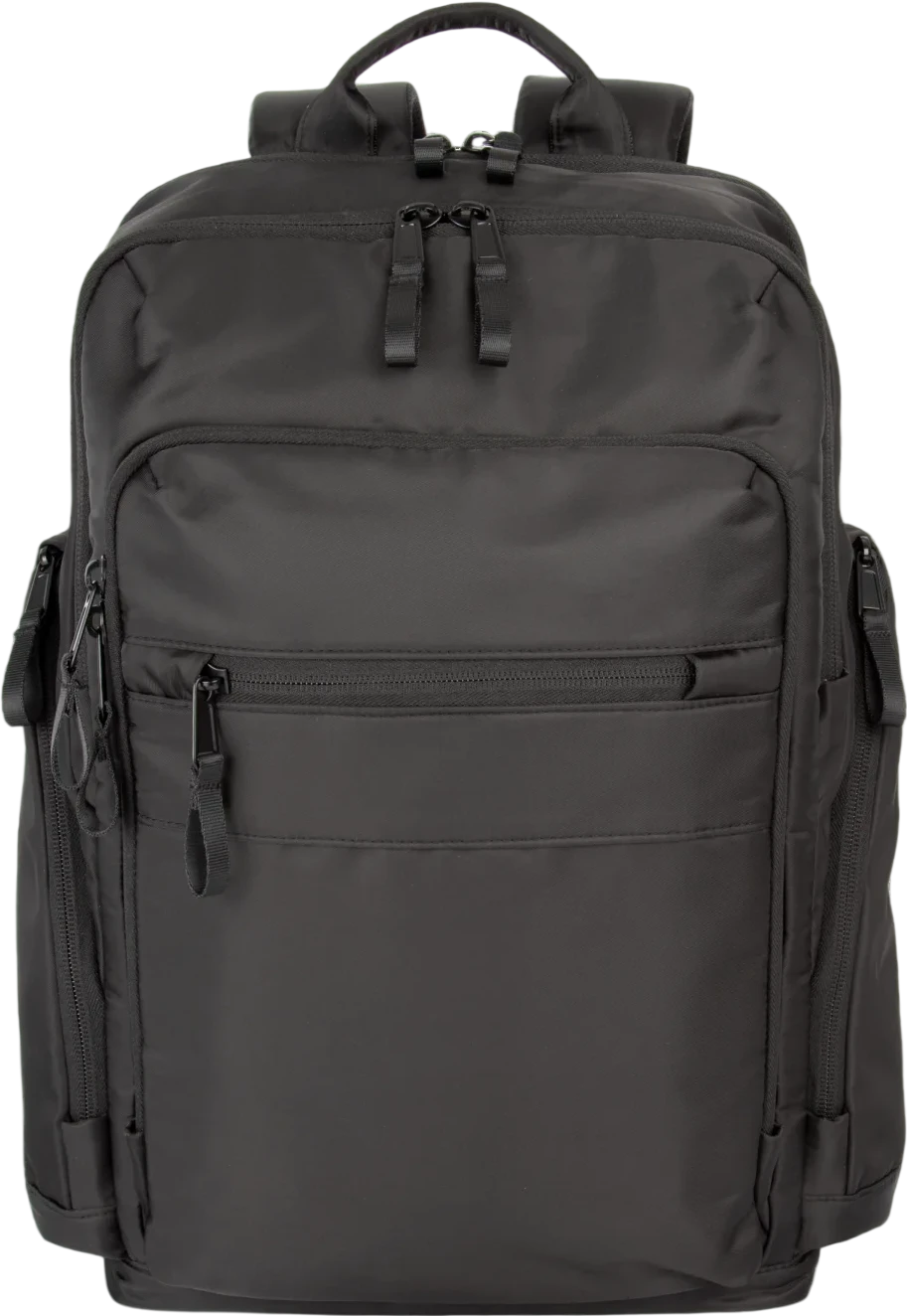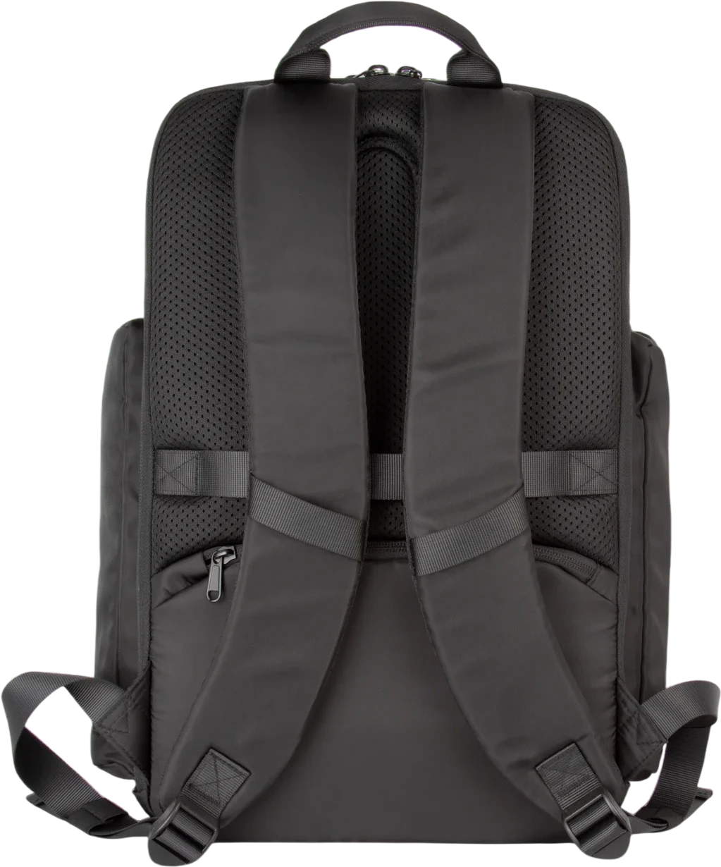 100% polyester. Sac à dos business haut de gamme. Trois compartiments pensés pour tous les usages. Compartiment frontal organisé avec poche zippée pour faciliter la personnalisation. Compartiment principal porte-documents avec plusieurs poches de rangement. Compartiment arrière indépendant pour ordinateur portable et tablette. Poches latérales zippées. Tirettes zippées en métal avec anneau d’extension, pour une meilleure prise en main et un design soigné. Bretelles ergonomiques, réglables, rembourrées et respirantes. Dos respirant avec bande pour fixation sur la poignée d’un trolley, pour un transport facilité. Poche de sécurité arrière avec fermeture zippée incurvée, au look moderne, idéale pour ranger en toute sécurité passeport, billets d’avion et téléphone.