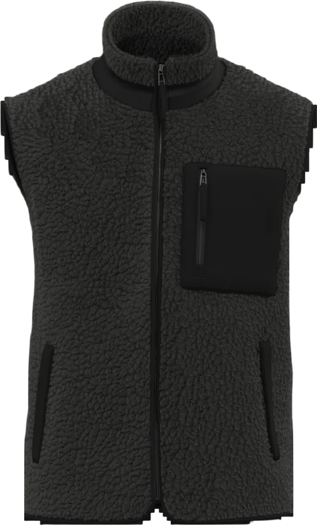 100% polyester recyclé post-consumer. Matière en sherpa double face avec polaire intérieure ton sur ton. Poche poitrine côté cœur et poche passepoilée côté en matière ripstop contrastée sur les couleurs Wet Sand/Driftwood et Forest Khaki/Dark Forest Khaki, et ton sur ton sur la couleur Black. Col en bi matière. Zip en plastique recyclé avec tire-zip en ouverture milieu avant et poche poitrine. Finition en biais élastiqué milieu devant, emmanchures et bas de vêtement contrasté, sur les couleurs Wet Sand/Driftwood et Forest Khaki/Dark Forest Khaki, et ton sur ton sur Black. Intérieur de col en matière sherpa et bride de suspension milieu dos. Bande de propreté en jersey ton sur ton en finition intérieur de col.
