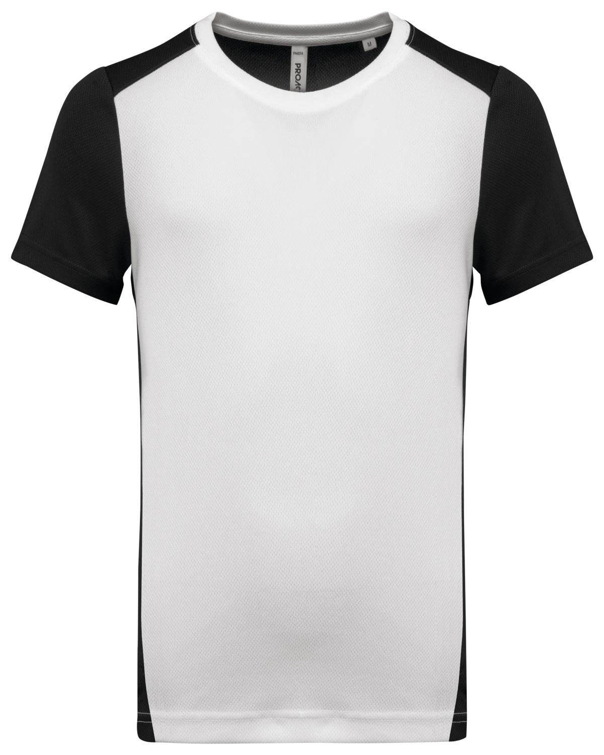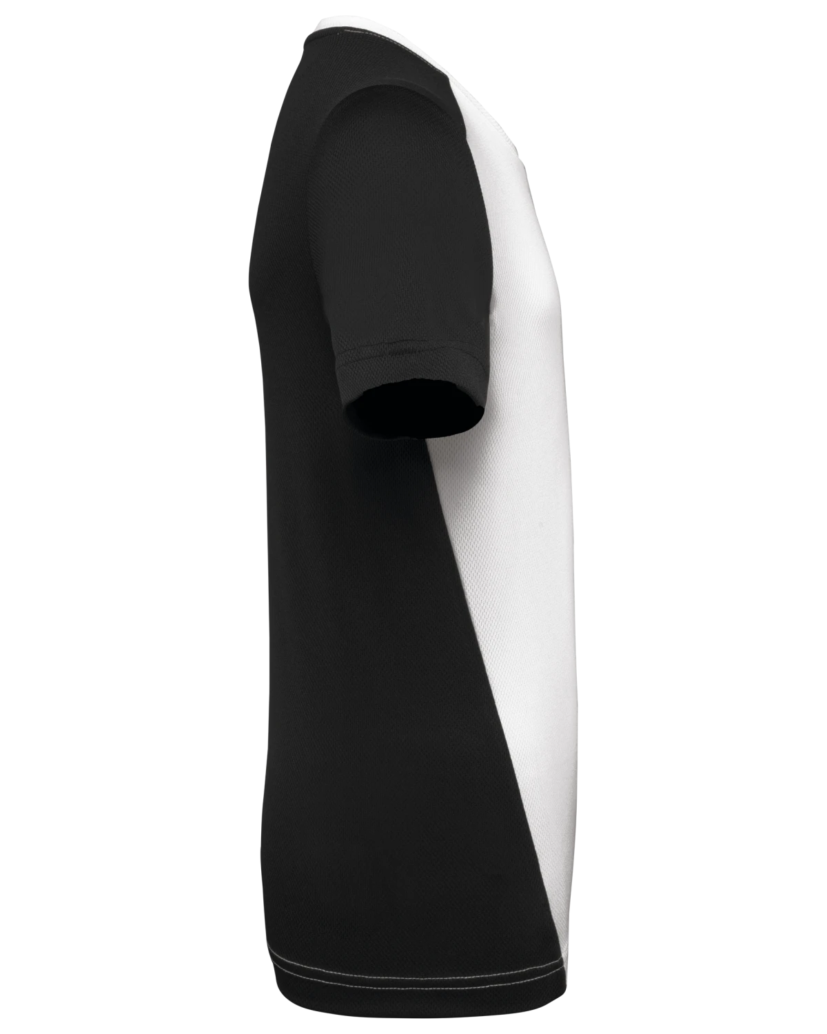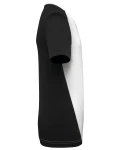 100% polyester birdseye recyclé post consumer. Tissu léger à séchage rapide. Coupe droite. Encolure ronde avec bande de propreté. Manches montées. Découpes épaules, manches, dos et partie en biais à l'avant contrastés. Finition double aiguille au bas de manches et de vêtement. Etiquette de marque détachable.