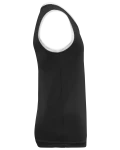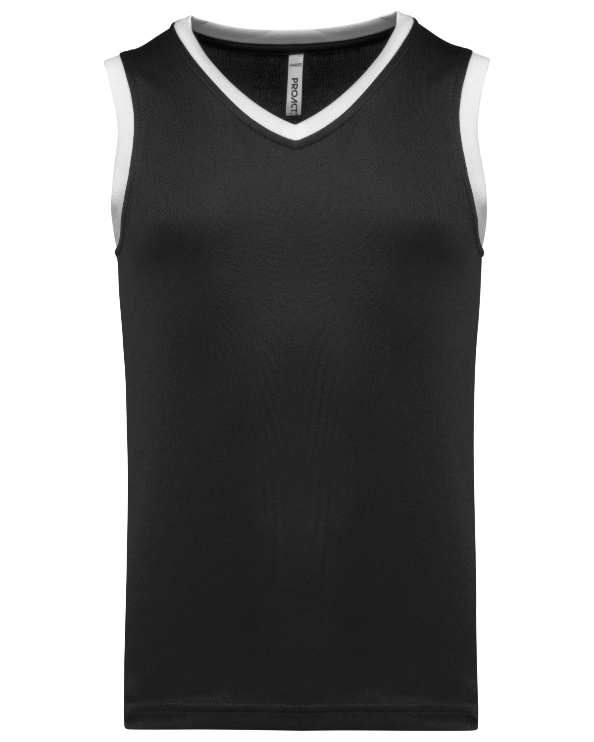 100% polyester birdseye. Encolure en V. Biais contrasté col et emmanchures. Finition double aiguille bas de vêtement. Etiquette de marque détachable.