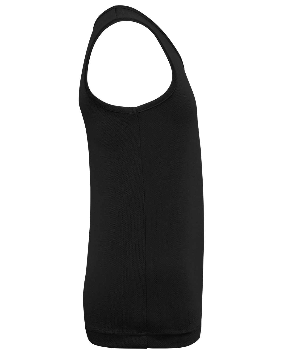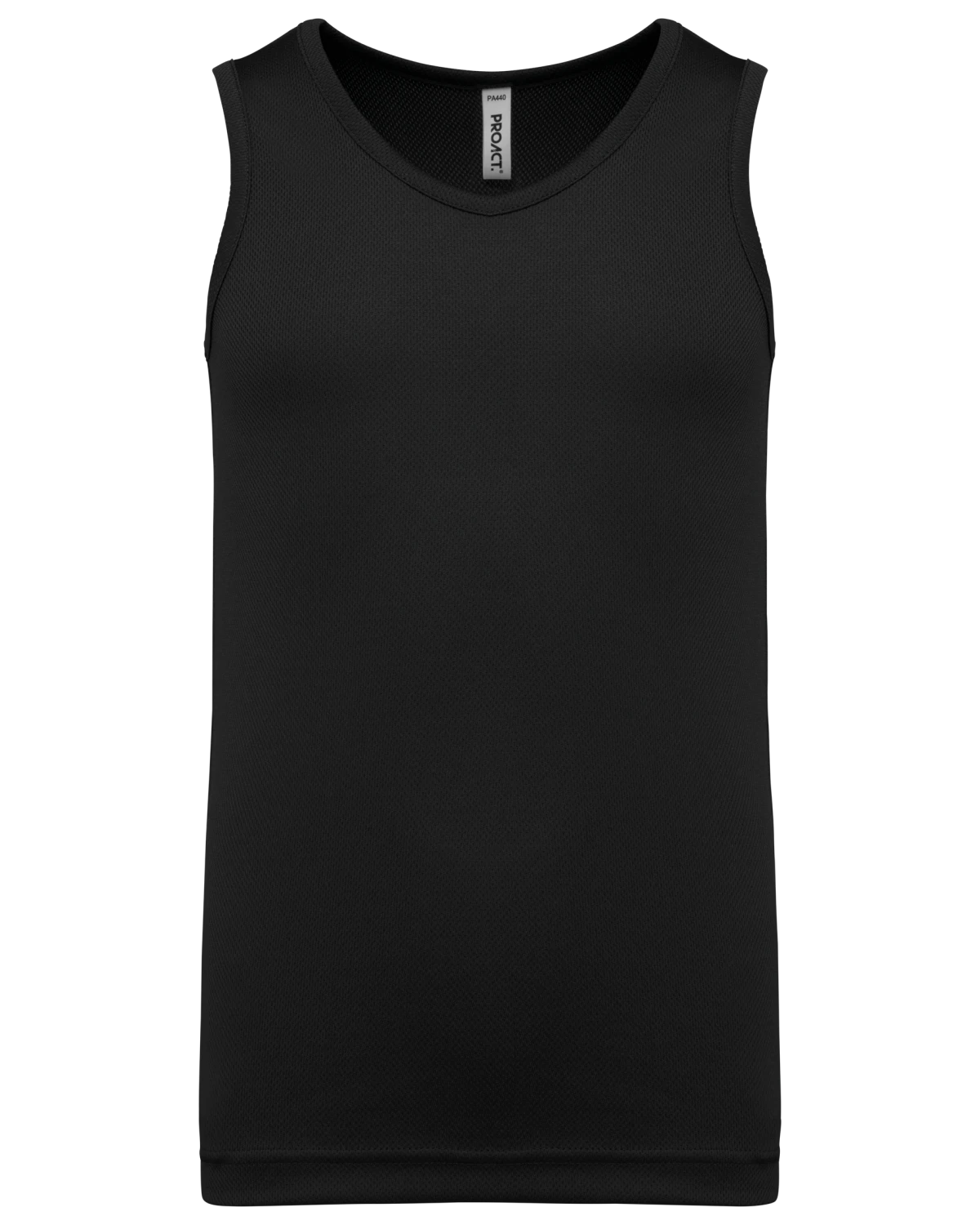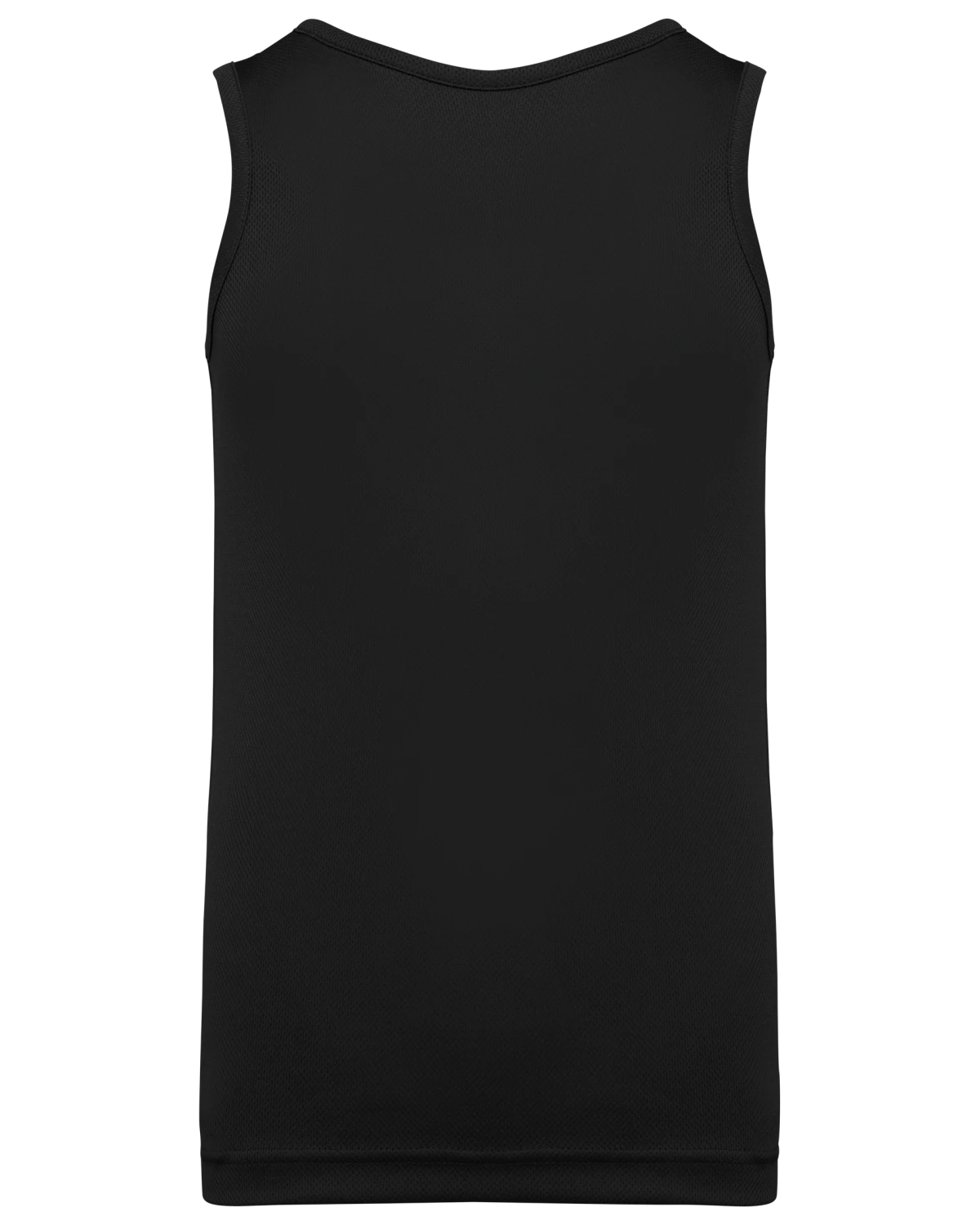 100% polyester birdseye. Tissu léger à séchage rapide. Biais à l'encolure et aux emmanchures. Finition double aiguille au bas de vêtement. Etiquette de marque détachable.