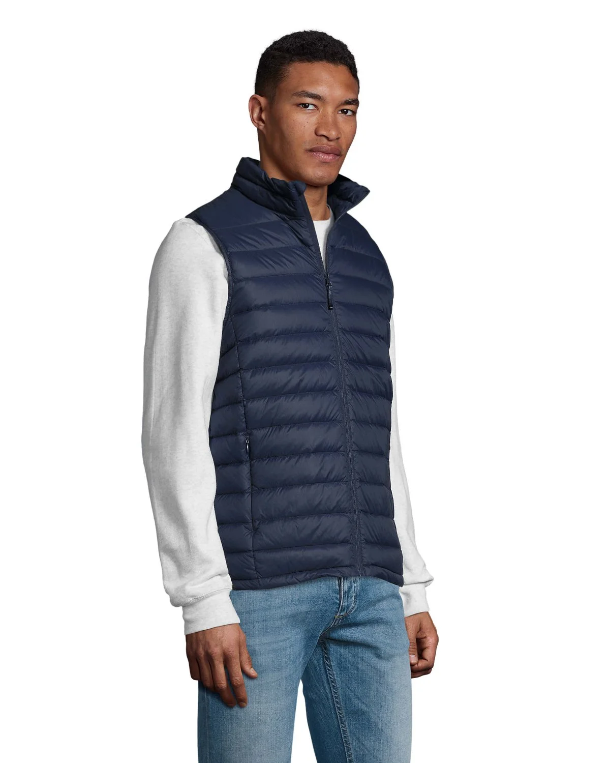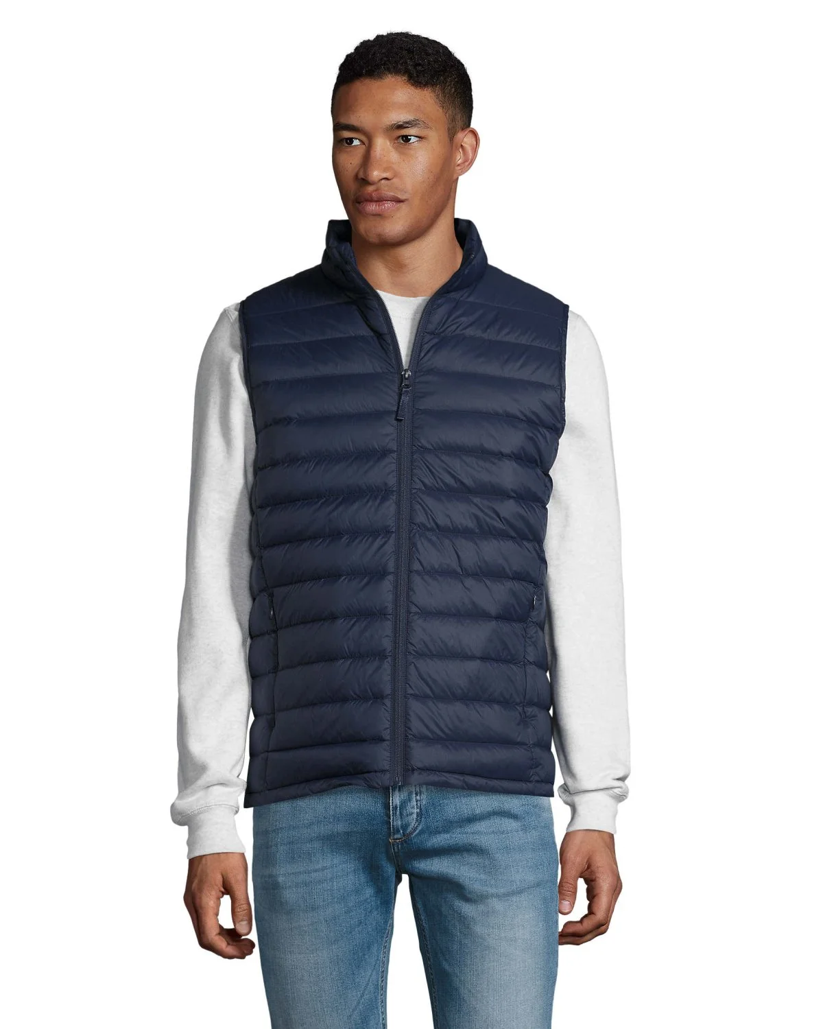SOL'S WILSON BW MEN. Doudoune ultra light sans manche homme. Extérieur et doublure : 100% polyamide. Matelassage 60% Sorona 40% polyester recyclé. Polyamide 380T, Ouverture zippée, 2 poches devant zippées, 2 poches intérieures, Petit col montant, Coupe près du corps, Système de pliage ''in bag'' avec stoppeurs. OEKO-TEX®. Vendu uniquement avec impression.