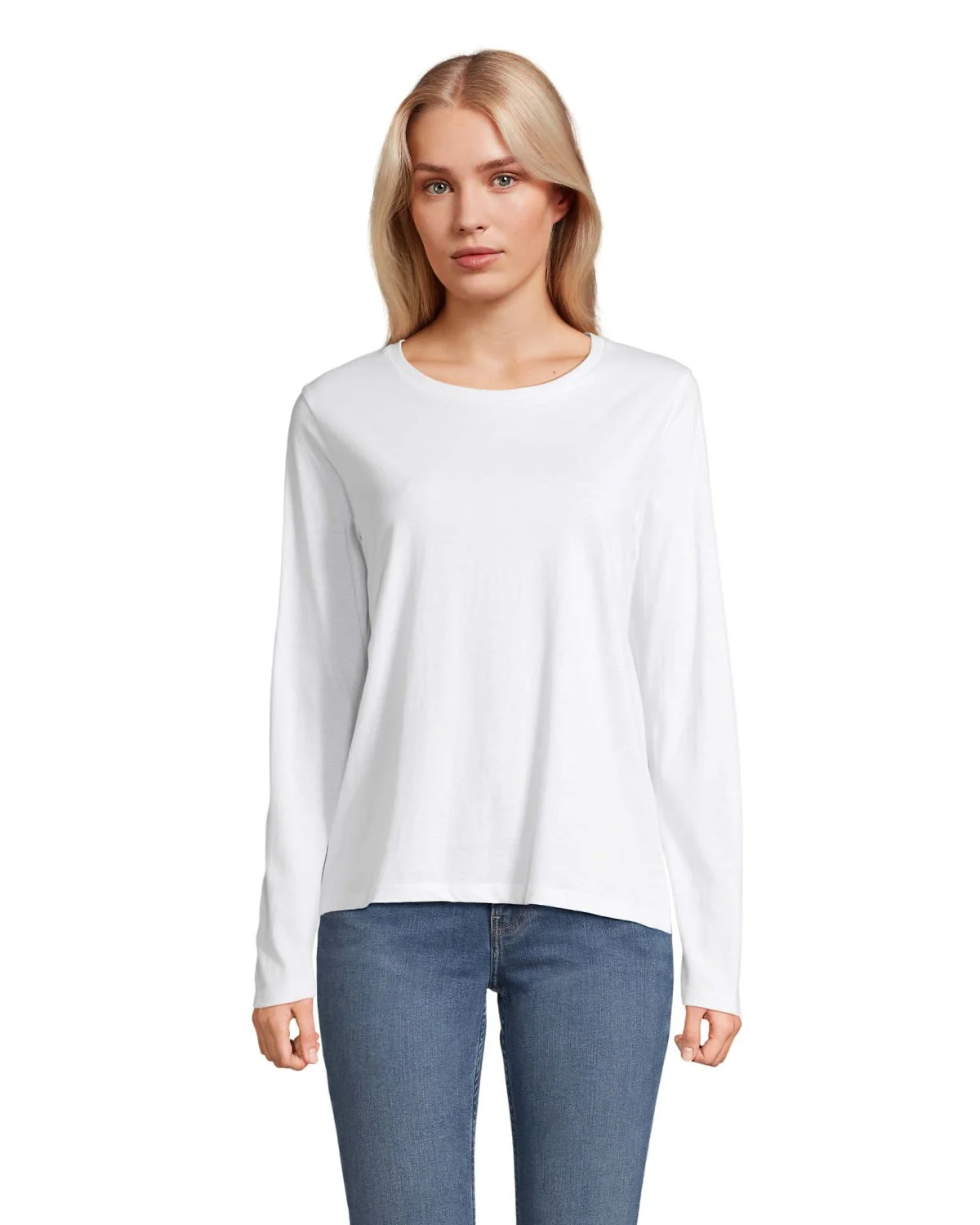SOL'S MONARCH WOMEN TEE SHIRT, tee-shirt femme col rond manches longues, 100% coton semi-peigné ringspun, coupe tubulaire confortable, bande de propreté au col, col rond en bord côte avec de l'élasthanne. Pour la correspondance des tailles, veuillez vous référer au size chart dans la documentation produit.