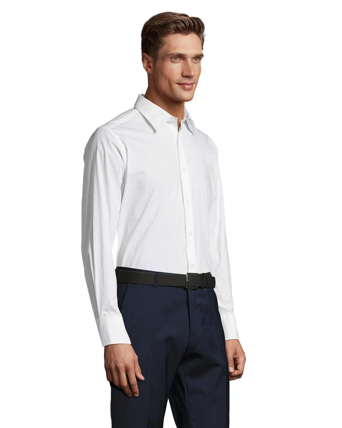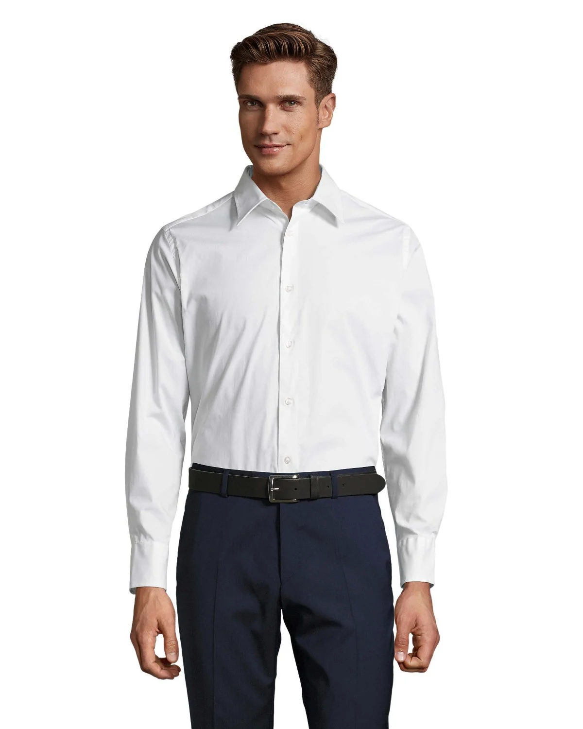 SOL'S BRIGHTON, chemise homme stretch manches longues, 97% coton - 3% élasthanne popeline stretch 140, coupe ajustée, manches longues, col à bouton unique, poignets 2 boutons et patte capucin, patte avec 7 boutons ton sur ton. Pour la correspondance des tailles, veuillez vous référer au size chart dans la documentation produit.