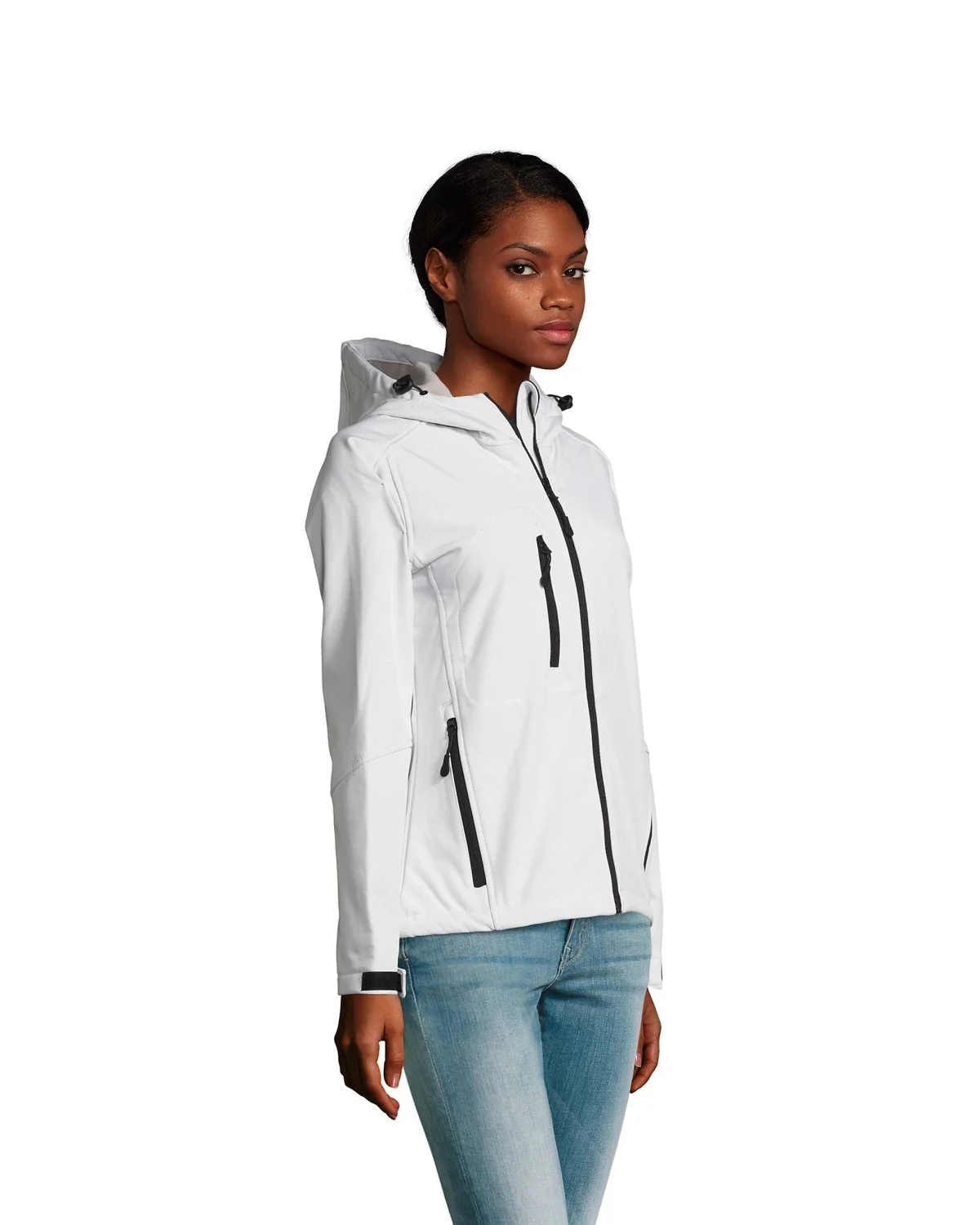 SOL'S REPLAY WOMEN, softshell femme à capuche, 94% polyester - 6% élasthanne, intérieur polaire: 100% polyester, 3 couches, membrane 8000 mm imperméable et respirante. softshell 340, 2 poches latérales et 1 poche poitrine zippées, cordon de serrage réglable à la taille, bas de manches ajustables avec bande auto-agrippante, capuche avec cordon de serrage. Pour la correspondance des tailles, veuillez vous référer au size chart dans la documentation produit.