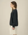 Col, bas de manches et bas de corps en côte 1x1 Bande de propreté en chevron Demi-lune dans la matière principale au dos du col Manches montées Coutures latérales déplacées vers l'avant Surpiqûre double sur l'ensemble