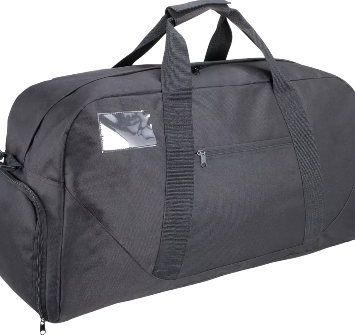 100% polyester. Sac en polyester 600D. Lanière d'épaule ajustable et amovible, poche côté zippée, porte-étiquette sur le côté pour identification, anses renforcées, poche range-chaussures sur le côté, pieds de stabilité.